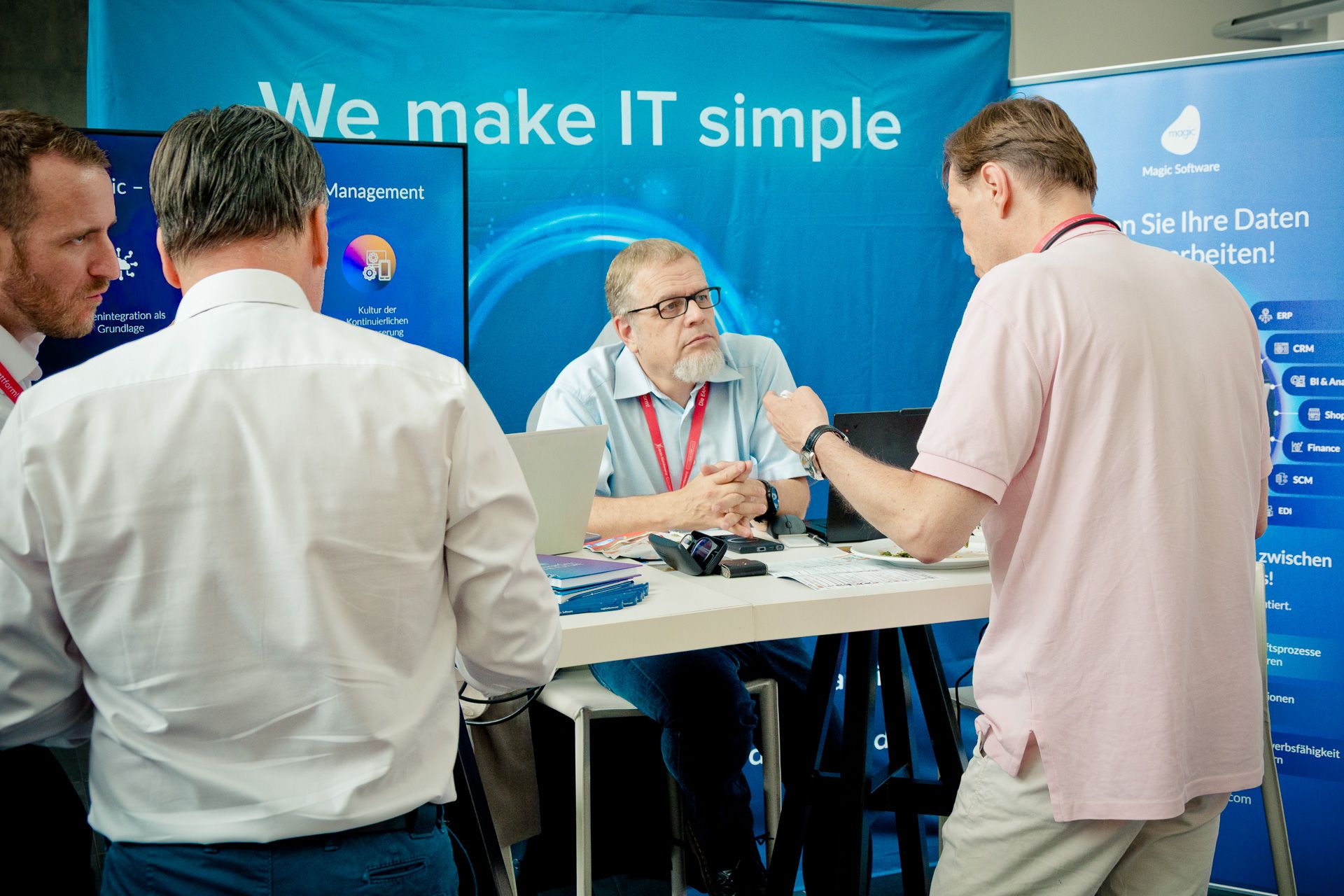 So auch dieses Mal – es war eine Freude, unseren engen Partner der Materna im Bereich Enterprise Architecture Management, die BOC Group, vertreten durch Robert Strobl und Christoph Moser, wiederzusehen.
